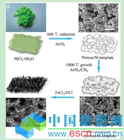 中國儲(chǔ)能網(wǎng)訊:三維石墨烯由于其獨(dú)特的三維結(jié)構(gòu),優(yōu)異的物理性質(zhì)與潛在應(yīng)用迅速引起廣泛關(guān)注。CVD法制備的三維石墨烯由于具有高的比表面積、優(yōu)異的導(dǎo)電性和多孔結(jié)構(gòu),成為目前石墨烯相關(guān)材料最為熱門的材料之一。而三維石墨烯的最近報(bào)道都是基于泡沫鎳生長的三維石墨烯及其復(fù)合物研究,而且泡沫鎳制備的三維石墨烯密度低孔隙率大,限制了其力學(xué)強(qiáng)度及實(shí)際應(yīng)用。因此,發(fā)展簡單快速的制備高密度三維石墨烯的方法及其應(yīng)用顯得尤為重要。