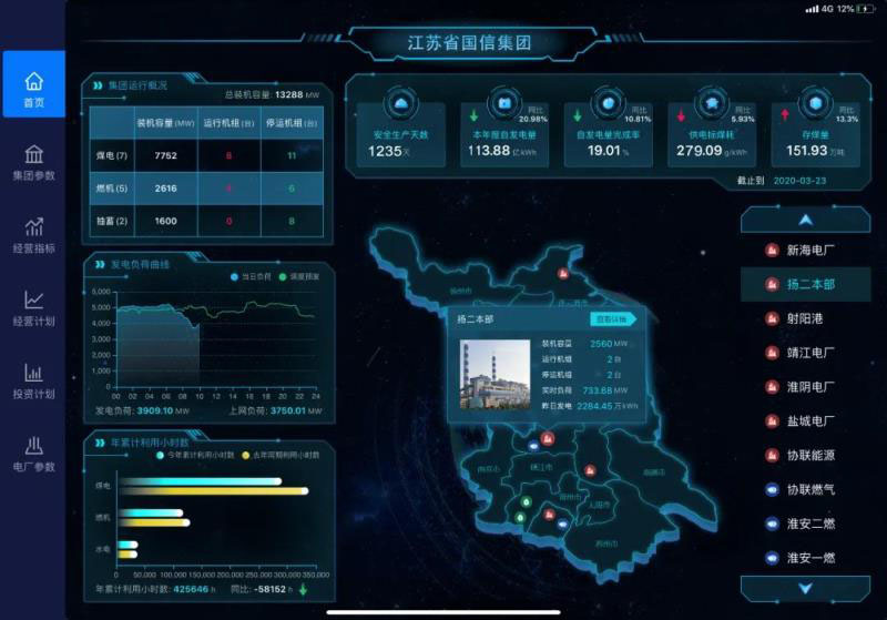 近期,“國信集團(tuán)智慧能源平臺”移動版應(yīng)用正式上線。這款應(yīng)用包含集團(tuán)指標(biāo)、廠級實(shí)時(shí)監(jiān)控信息系統(tǒng)指標(biāo)、經(jīng)營指標(biāo)及各類歷史數(shù)據(jù)匯總分析展示,將下屬31家電廠的生產(chǎn)經(jīng)營各領(lǐng)域的真實(shí)數(shù)據(jù)每天60億條的大數(shù)據(jù),全方位分析經(jīng)營情況,自動生成文字加圖表80多頁的經(jīng)營分析報(bào)告,自動為集團(tuán)生成財(cái)務(wù)的3大報(bào)表。此外,35萬個(gè)測點(diǎn)數(shù)據(jù)、2699張完整重現(xiàn)電廠的實(shí)時(shí)畫面,足夠支撐國信集團(tuán)實(shí)時(shí)監(jiān)控所有電廠的各系統(tǒng)、設(shè)備的運(yùn)行情況。