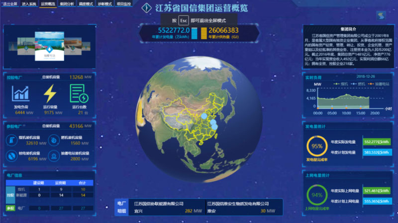 “國信集團(tuán)智慧能源平臺”調(diào)度指揮大屏