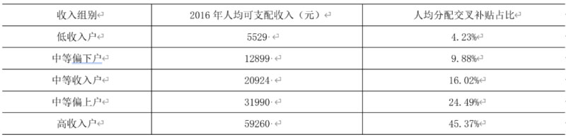 圖3 交叉補貼對不同收入水平居民的福利影響