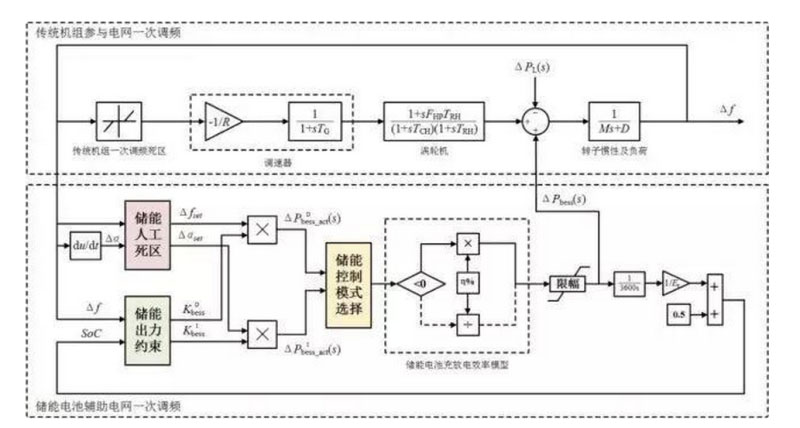 中國儲能網(wǎng)訊:本文在儲能參與電網(wǎng)調頻的控制方法中考慮了儲能電池的調頻死區(qū),為充分發(fā)揮儲能快速、精準響應在電網(wǎng)調頻中的潛力,將儲能調頻死區(qū)的界限設置在常規(guī)機組死區(qū)的范圍內,有效改善電網(wǎng)頻率質量,并避免常規(guī)機組參與調頻的頻繁動作。
