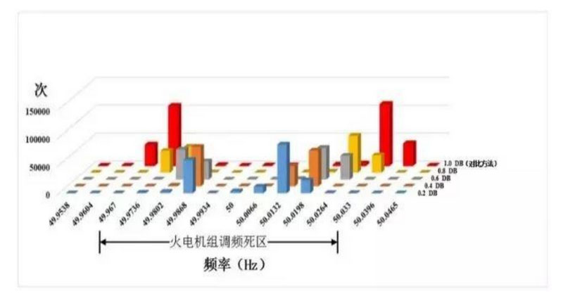 圖2 不同儲能調頻死區(qū)下的頻率分布