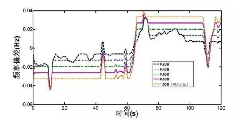 圖1 不同儲能調頻死區(qū)下的頻率偏差曲線