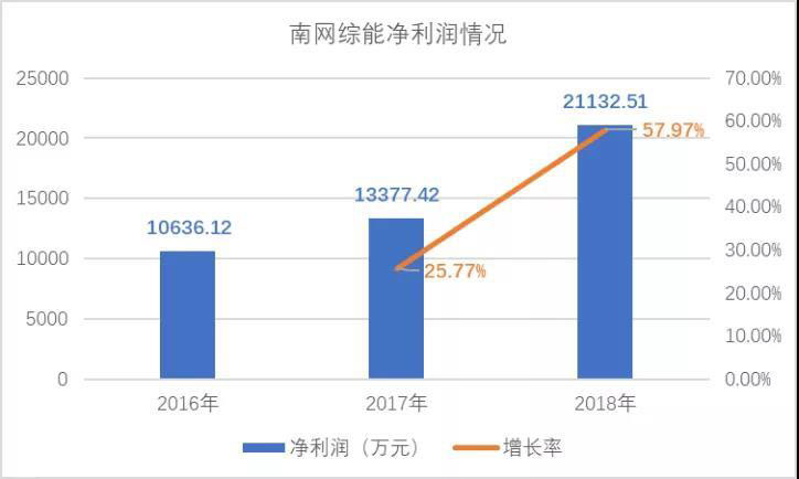 查看南網(wǎng)綜能近3年的財(cái)報(bào)后發(fā)現(xiàn):南網(wǎng)綜能自2016年以來,每年的收入和利潤均呈現(xiàn)同比增長的情況,其中2018年的凈利潤同比增長達(dá)到了57.97%。從收入來看,南網(wǎng)綜能的綜合能源服務(wù)在市場上具有一定的份額,和增長性。