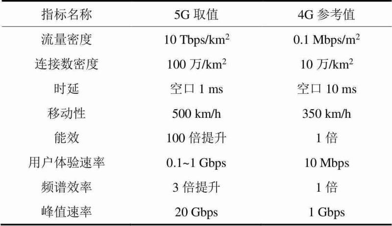 表1 5G與4G指標(biāo)對比