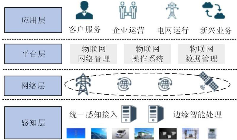 1) 感知層重點(diǎn)是統(tǒng)一終端標(biāo)準(zhǔn),推動跨專業(yè)數(shù)據(jù)同源采集,實(shí)現(xiàn)配電側(cè)、用電側(cè)采集監(jiān)控深度覆蓋,提升終端智能化和邊緣計算水平[19]。