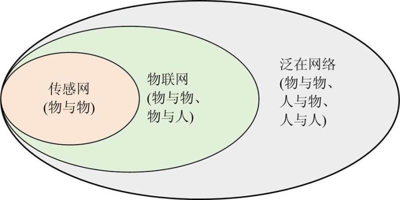圖1 泛在網(wǎng)絡(luò)、物聯(lián)網(wǎng)、傳感網(wǎng)之間的關(guān)系