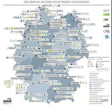 由德國的傳輸運(yùn)營商Tennet, Gasunie Deutschland和Thyssengas一同開發(fā)的“Element One” 計(jì)劃已經(jīng)開始實(shí)施,目標(biāo)是率先實(shí)現(xiàn)電力和天然氣網(wǎng)絡(luò)的耦合,以推動(dòng)能源轉(zhuǎn)型的進(jìn)程。其項(xiàng)目具體計(jì)劃是在德國西北部的下薩克森州建設(shè)一座100兆瓦的天然氣試點(diǎn)發(fā)電廠,該工廠的調(diào)試將從2022年起逐步進(jìn)行。下薩克森州豐富的風(fēng)能資源與四通八達(dá)的天然氣網(wǎng)絡(luò)以及配套的儲能基礎(chǔ)設(shè)施,也為該項(xiàng)目提供了更扎實(shí)的基礎(chǔ)。新電廠的作用主要是收集和重新分配北海的海上風(fēng)電,并將這些電能轉(zhuǎn)換為天然氣,同時(shí)也進(jìn)一步開發(fā)了新的可再生能源儲存潛力。下薩克森州環(huán)境與能源部長Olaf Lies 將這個(gè)項(xiàng)目描述為該州轉(zhuǎn)變?yōu)槟茉创笾莸年P(guān)鍵信號,其表示會逐步制定相關(guān)設(shè)施標(biāo)準(zhǔn)的產(chǎn)業(yè)政策,并堅(jiān)信氫能是能源轉(zhuǎn)型達(dá)成目標(biāo)的關(guān)鍵,而強(qiáng)大的儲能技術(shù)不僅能夠減少電網(wǎng)的負(fù)荷,也可以節(jié)約網(wǎng)絡(luò)擴(kuò)展的成本。下圖所示為目前德國的電轉(zhuǎn)氣項(xiàng)目總體分布情況,其中藍(lán)色代表氫能,綠色代表天然氣??梢钥吹?,德國電轉(zhuǎn)氣項(xiàng)目的分布廣泛而且均勻,這勢必將對未來大規(guī)模復(fù)雜燃?xì)饩W(wǎng)絡(luò)奠定扎實(shí)的基礎(chǔ),也顯示了德國對能源轉(zhuǎn)型之路的布局與雄心。