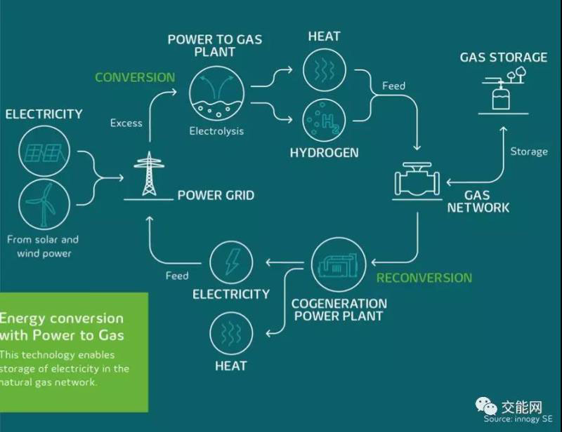 上周我們介紹了電池技術(shù),其中鋰電池是目前應(yīng)用比較廣泛的一種電儲能技術(shù),但在儲能密度和儲能時(shí)間上來看仍具有一定的劣勢,相較于此,電轉(zhuǎn)氣技術(shù)(簡稱P2G或PtG)在這兩方面有著絕對的優(yōu)勢。這種通過將電力轉(zhuǎn)化為氣體燃料的技術(shù),利用了電解水的化學(xué)過程產(chǎn)生了氫氣,氫氣可以直接使用或者通過其他步驟再轉(zhuǎn)化為合成氣體(例如甲烷或液化石油氣等),這種巧妙的轉(zhuǎn)換方式,在跨季節(jié)儲能上有著很好的應(yīng)用前景。通過電轉(zhuǎn)氣技術(shù)生成的氣體,不僅可以作為燃料通過燃燒生熱,也可以應(yīng)用于發(fā)電機(jī)的動(dòng)力來源。除此之外,產(chǎn)生的氫能可以作為燃料電池,這也進(jìn)一步促進(jìn)了行業(yè)耦合,同時(shí)也推動(dòng)了綜合能源技術(shù)的一體化進(jìn)程。