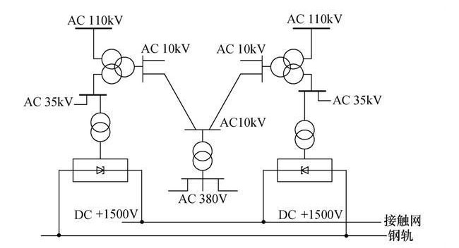 如圖5所示,軌道交通用多端口能量路由器AC 35kV~AC 380V~DC 1500V典型主接線(或者AC 10kV~AC 380V~DC 1500V),直接輸出DC 1500V供軌道交通牽引變使用,AC 380V直接供生活配電用,而且,能量路由器具備電能的多方向流動(dòng),可方便軌道交通制動(dòng)過(guò)程的能量回收,無(wú)需另外增加其他能量回饋裝置。
