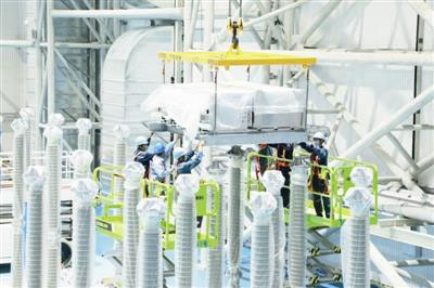 除保證安裝環(huán)境“夠干凈”外,還要保證設(shè)備安裝“夠穩(wěn)”。謝妙添介紹:“相比常規(guī)懸吊式閥塔,該工程閥塔采用支撐式安裝,每個(gè)閥塔有16個(gè)底座,必須把各底座的水平精度控制好,才能保障閥塔組件精準(zhǔn)安裝就位。因此,我們嚴(yán)格按照閥組安裝工藝要求,各底座相互間高低差有效控制在±1毫米。”