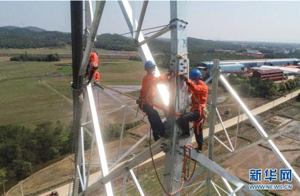 3月20日,在江西撫州市東鄉(xiāng)區(qū),工作人員在組立鐵塔(無人機(jī)照片)。 近日,雅中至江西±800千伏特高壓直流輸電工程(江西段)第一基鐵塔在江西撫州市東鄉(xiāng)區(qū)加緊施工。據(jù)介紹,該工程起于四川省涼山彝族自治州鹽源縣雅中換流站,途經(jīng)5省,落點(diǎn)為江西省撫州市東鄉(xiāng)區(qū)南昌換流站。工程設(shè)計(jì)輸送容量800萬千瓦,計(jì)劃在2021年建成投運(yùn)。 新華社發(fā)(涂賽龍 攝)