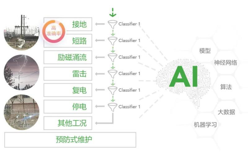 “云”側(cè)實(shí)現(xiàn)故障定位。通過將AI技術(shù)主要應(yīng)用于平臺端的智能大數(shù)據(jù)綜合分析系統(tǒng),實(shí)現(xiàn)線路故障區(qū)段精準(zhǔn)定位、線路工況識別、線路故障分類以及未來將要實(shí)現(xiàn)的故障預(yù)測等。最終,平臺還會把故障定位結(jié)果以短信和手機(jī)APP消息推送的方式發(fā)送給線路運(yùn)檢人員,幫助他們快速查找到故障點(diǎn)。