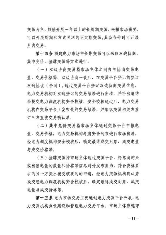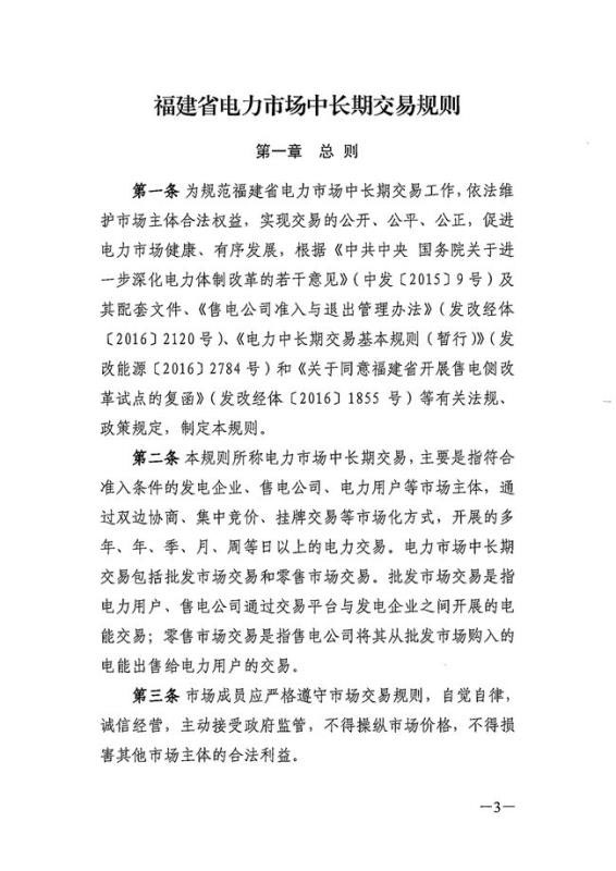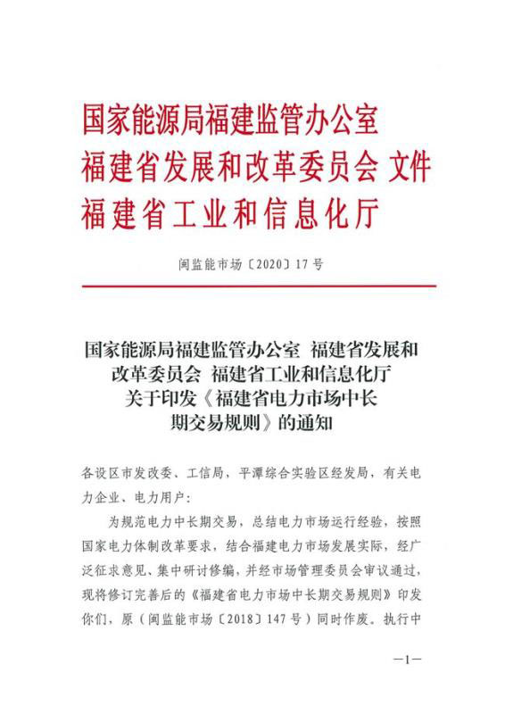 福建能監(jiān)辦、福建省發(fā)改委、福建省工信廳聯(lián)合印發(fā)《福建省電力市場中長期交易規(guī)則》的通知,這也是福建在繼連續(xù)兩次修訂發(fā)布電力市場交易規(guī)則后,首次發(fā)布電力中長期交易規(guī)則。福建省電力市場中長期交易規(guī)則發(fā)布后,原《福建電力市場交易規(guī)則(2018版)》(閩監(jiān)能市場【2018】147號)文件同時廢止。