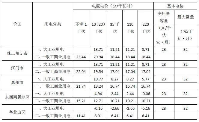 表2 廣東省電網(wǎng)各價(jià)區(qū)輸配電價(jià)表(不含深圳市)