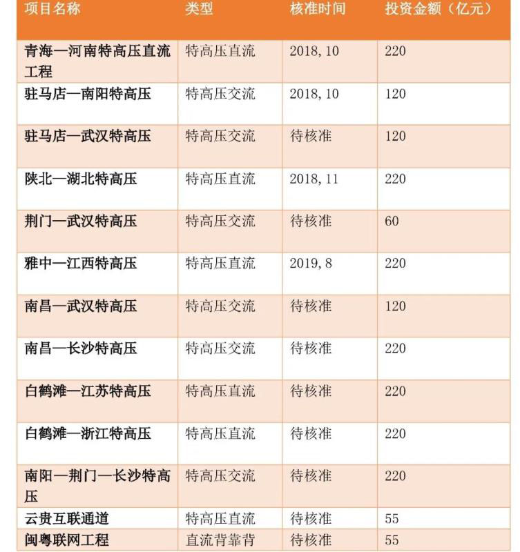 距離2018年9月印發(fā)的《關(guān)于加快推進(jìn)一批輸變電重點(diǎn)工程規(guī)劃建設(shè)工作的通知》已有一年半時(shí)間,原規(guī)劃這12條特高壓項(xiàng)目全部于2018第四季度或2019年核準(zhǔn),但截至2020年 2月底仍有5交2直共計(jì)7條特高壓線路未正式核準(zhǔn),對(duì)應(yīng)投資金額預(yù)計(jì)在800億左右規(guī)模。