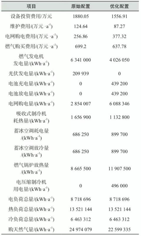 在建立起CloudIEPS數(shù)字孿生模型后,即可調(diào)用集成優(yōu)化模塊中的優(yōu)化算法內(nèi)核來(lái)實(shí)現(xiàn)案例系統(tǒng)的優(yōu)化設(shè)計(jì)。具體結(jié)果見表1。
