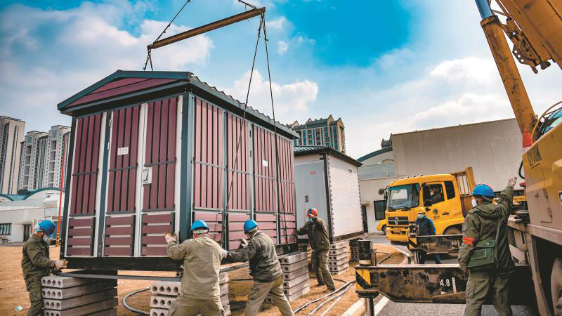 江夏供電公司總經(jīng)理陳剛介紹,進(jìn)場施工前,該公司與醫(yī)院建設(shè)設(shè)計(jì)單位進(jìn)行溝通后,擬定雙環(huán)網(wǎng)四回路同時(shí)供電高可靠性供電方案,充分考慮了各種制約工期因素。在其他單位入場前,率先進(jìn)行電纜通道破路埋管作業(yè);設(shè)備基座全部采用預(yù)制板,現(xiàn)場拼裝;對負(fù)荷需求進(jìn)行了科學(xué)預(yù)估,確保不因規(guī)劃變更而更改供電施工方案?!按送?,雷神山醫(yī)院施工條件也相對較好,是原軍運(yùn)村停車場,我們把所有電力設(shè)備都布置在醫(yī)院外圍,在施工過程中與其他建設(shè)單位高度協(xié)同,減少交叉作業(yè)沖突矛盾,沒有出現(xiàn)任何停工滯工現(xiàn)象?!?