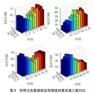 本文選擇電力市場(chǎng)發(fā)展較成熟的美國(guó) PJM 市場(chǎng)的相關(guān)數(shù)據(jù)做算例驗(yàn)證。為體現(xiàn)泛在電力物聯(lián)網(wǎng)大數(shù)據(jù)特性的影響,本文選取 2016 年 8 月 28 日—2016 年 10 月 15 日的 48 節(jié)點(diǎn)和 96 節(jié)點(diǎn) 2 組歷史電價(jià)數(shù)據(jù) ( 量綱為 $) , 2010 年 1 月 1 日— 2016 年 10 月15 日 48 節(jié)點(diǎn)和 96 節(jié)點(diǎn) 2 組歷史負(fù)荷數(shù)據(jù) ( 量綱為MW) ,以及 2013 年 1 月 1 日— 2016 年 10 月 22 日氣象因素?cái)?shù)據(jù) ( 日最高溫度、日最低溫度、日平均溫度、日相對(duì)濕度以及日降雨量 ) 為樣本,使用Matlab2014a 編程實(shí)現(xiàn)算例求解。