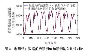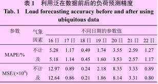 如圖 4 所示,依托泛在物聯(lián)網(wǎng)數(shù)據(jù)平臺(tái)前后的預(yù)測(cè)曲線,從某些細(xì)節(jié) ( 如圖 4 的時(shí)段 1~100 和時(shí)段300~400) 可見(jiàn),通過(guò)泛在物聯(lián)網(wǎng)提供的更準(zhǔn)確數(shù)據(jù),預(yù)測(cè)曲線會(huì)更貼近預(yù)測(cè)輸入均值。且表 1 顯示,利用泛在數(shù)據(jù)的 MAPE 和 MSE 值比傳統(tǒng)數(shù)據(jù)情況下整體更小,因此證明了計(jì)及氣象因素可在一定程度上提高短期負(fù)荷預(yù)測(cè)精度。