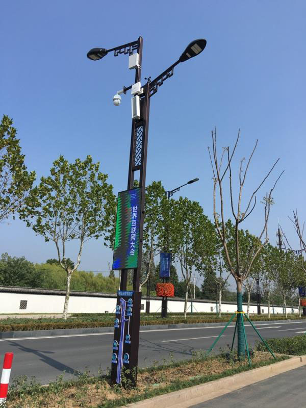 一臺電動汽車模型正在由一盞神經元路燈伸出的充電槍充電,神經元智慧路燈又兼具智慧照明、環(huán)境監(jiān)測、智能監(jiān)控、5G基站、智能廣播、信息公告、水位監(jiān)測、一鍵報修等功能?!斑@種已在烏鎮(zhèn)子夜路投運的路燈除了能實時根據人流、車流自動調節(jié)燈光明暗實現節(jié)能外,還仿佛是城市末端的神經元,所有數據都集中在我們的智慧路燈云管理平臺,實現了業(yè)務融合、數據融合。一旦有異常情況或緊急情況發(fā)生,云平臺會發(fā)出預警信息,而行人也可通過一鍵報修功能進行主動告知?!崩罘f介紹說。目前,以子夜和互聯網之光周圍為主,362套智慧路燈靜默閃耀在烏鎮(zhèn),共同編織出一張大數據微網,為智慧城市賦能。