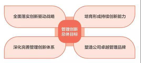 公司管理創(chuàng)新體系以公司“三型兩網(wǎng)、世界一流”戰(zhàn)略目標(biāo)為主線,分為戰(zhàn)略引領(lǐng)層、實(shí)踐實(shí)施層、運(yùn)行管理層。