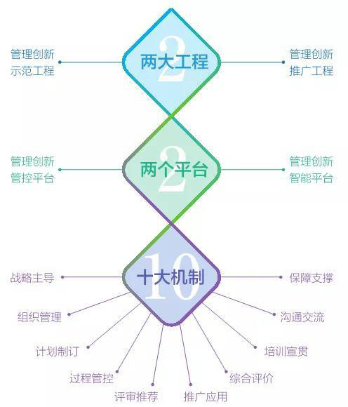 管理創(chuàng)新實(shí)行“2-2-10”管控模式即:“兩大工程”“兩個(gè)平臺(tái)”“十大機(jī)制”。