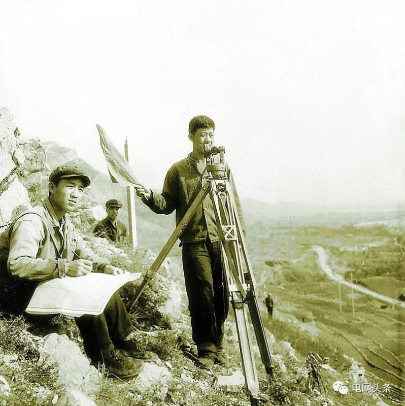▼1957年,山東省第一條110千伏神濟(jì)線(淄博神頭——濟(jì)南)投運(yùn),山東第一個跨地區(qū)電網(wǎng)——魯中電網(wǎng)建成。圖為110千伏線路勘察現(xiàn)場。