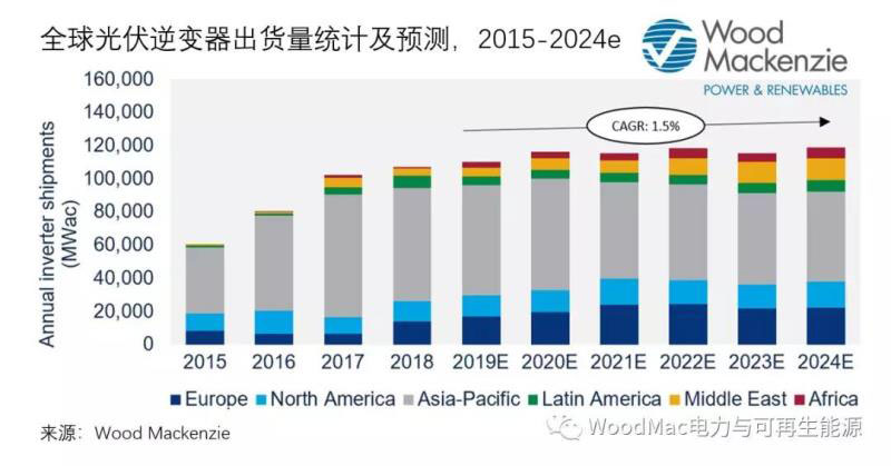 Wood Mackenzie預測2019年到2024年,中央獨立逆變器和三相逆變器的產(chǎn)品收入將面臨大幅下降。
