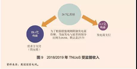 如前文所述,輸電公司的總收入是由監(jiān)管機(jī)構(gòu)確定。輸電系統(tǒng)用戶通過(guò)以下方式收取費(fèi)用:向發(fā)電商和負(fù)荷商 / 配電商收取接入費(fèi)用;向發(fā)電商和負(fù)荷商收取系統(tǒng)輸電過(guò)網(wǎng)費(fèi)(TNUoS)。國(guó)際聯(lián)網(wǎng)費(fèi)用主要由用戶通過(guò)套利收入支付,輸電網(wǎng)損通過(guò)輸電網(wǎng)損乘數(shù)調(diào)整計(jì)量容量收回(45% 分配給發(fā)電商,55% 分配給零售商),由 Elexon 計(jì)算,提供服務(wù)質(zhì)量獎(jiǎng)勵(lì)款。