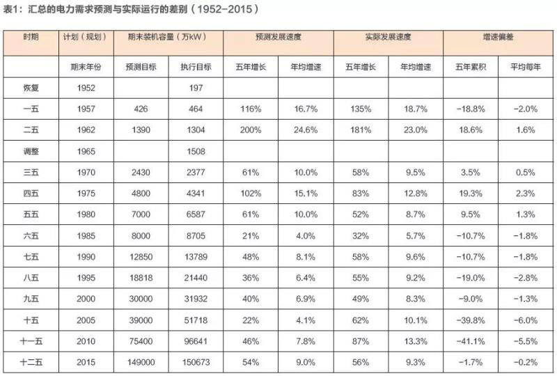 從過(guò)去的實(shí)踐來(lái)看,大部分人的運(yùn)氣是不佳的。以官方發(fā)布的電力五年規(guī)劃為例,孫壽廣等人曾做過(guò)一個(gè)很好的回顧。他們的統(tǒng)計(jì)匯總顯示,對(duì)于我國(guó)這樣一個(gè)大國(guó),體量很大,年度電力需求增長(zhǎng),其本來(lái)就在一個(gè)比較窄的可能區(qū)間上(起碼過(guò)去不可能高于20%,也不可能低于-5%),其預(yù)測(cè)偏差都少則0.3個(gè)百分點(diǎn),多則6個(gè)百分點(diǎn)。請(qǐng)注意:是百分點(diǎn),而不是百分比。如果按百分比算誤差,6個(gè)百分點(diǎn)的誤差接近100%。
