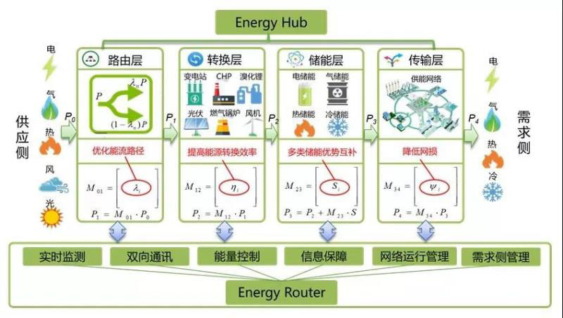 能源路由器 (Energy Router) 概念是由美國北卡州立大學(xué) FREEDM中心的Alex Q. Huang提出的用于解決DIES能源耦合過程中信息流問題的模型。Energy Router側(cè)重于DIES的通信、控制與管理。Energy Router從信息層面對Energy Hub提供支持,有利于促進(jìn)未來DIES的進(jìn)一步發(fā)展。