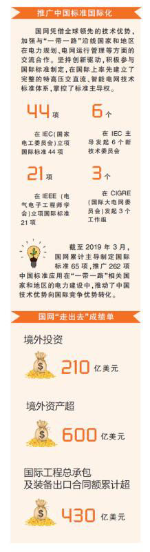 據(jù)介紹,國網(wǎng)根據(jù)自身優(yōu)勢和國外市場需求,建立了“投資、建設(shè)、運(yùn)營”和“技術(shù)、裝備、標(biāo)準(zhǔn)”兩個(gè)“一體化走出去”新模式。近年來,該公司累計(jì)主導(dǎo)制定國際標(biāo)準(zhǔn)65項(xiàng),發(fā)布國際標(biāo)準(zhǔn)30項(xiàng),推廣262項(xiàng)中國標(biāo)準(zhǔn)在“一帶一路”沿線國家和地區(qū)電力建設(shè)中得到應(yīng)用,特別是在菲律賓、巴西、巴基斯坦、埃及等國家的電網(wǎng)建設(shè)和運(yùn)行中廣泛使用了中國標(biāo)準(zhǔn),推動了中國技術(shù)優(yōu)勢向國際競爭優(yōu)勢轉(zhuǎn)化。
