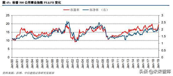 為了剔除公司層面偶然事件的影響,我們進一步對比中美電力行業(yè)指數的估值情況。我們選擇標普500的公用事業(yè)指數和中信火電行業(yè)指數進行對比分析。從標普500公用事業(yè)指數來看,其PE及PB波動幅度較為一致,說明此指數相應的ROE也較為穩(wěn)定,基本上在8%—10%之間。2015年后指數的估值中樞有所上移,PE及PB的中位數分別為17.26倍和1.89倍。