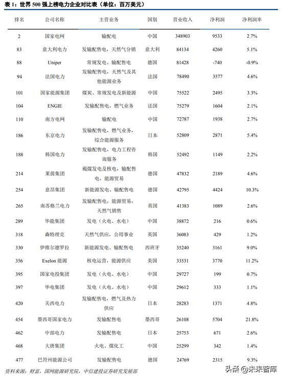 4.1、世界500強:中國電力企業(yè)上榜較多,盈利能力偏弱