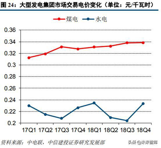 從大型發(fā)電集團的市場化交易電價變化趨勢來看,煤電及水電的交易電價整體趨勢向上。大型發(fā)電集團2018年煤電市場交易(含跨區(qū)跨省市場交易)平均電價為0.3383元/千瓦時,較上年提高0.0119元/千瓦時;水電機組市場交易平均電價為0.2245元/千瓦時,較上年提高0.0038元/千瓦時。