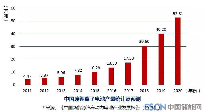 數(shù)據(jù)顯示,預(yù)計到2020年,我國電動汽車?yán)塾嫳S辛繉⑦_到500萬輛,2030年保有量將達5000萬輛以上,以配置80kWh電池為參考,等效儲能容量將達到40億kWh,同時電動汽車退役電池梯次利用存量達4億kWh。