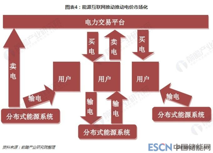 在資金交換方面,通過能源互聯(lián)網(wǎng),未來每個(gè)用電主體都可能成為售電主體,同時(shí)具有賣電和買電的需求。借助分布式能量采集裝置,終端用戶可自主發(fā)電并選擇將多余電能并入當(dāng)?shù)嘏潆娋W(wǎng)通過交易平臺(tái)進(jìn)行銷售。當(dāng)自主發(fā)電無法滿足需求時(shí),終端用戶可從交易平臺(tái)中買電使用。隨著分布式能源儲(chǔ)存裝置的逐漸普及,終端用戶還可以在用電低谷時(shí)以低價(jià)購(gòu)電將電力存儲(chǔ)起來,并在用電高峰時(shí)以高價(jià)將它們賣給有需要的用戶。能源互聯(lián)網(wǎng)有助于將電力轉(zhuǎn)變成一種可以任意買賣的普通商品,推動(dòng)電價(jià)的市場(chǎng)化進(jìn)程。