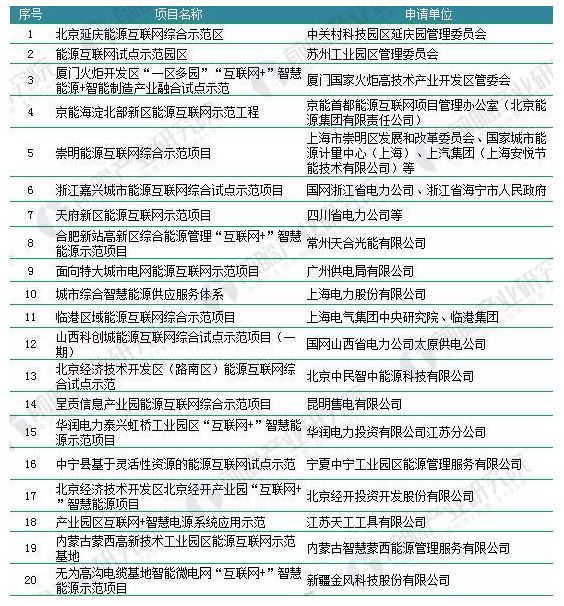 圖表1:首批“互聯(lián)網(wǎng)+”智慧能源(能源互聯(lián)網(wǎng))示范項(xiàng)目評(píng)選結(jié)果(1)