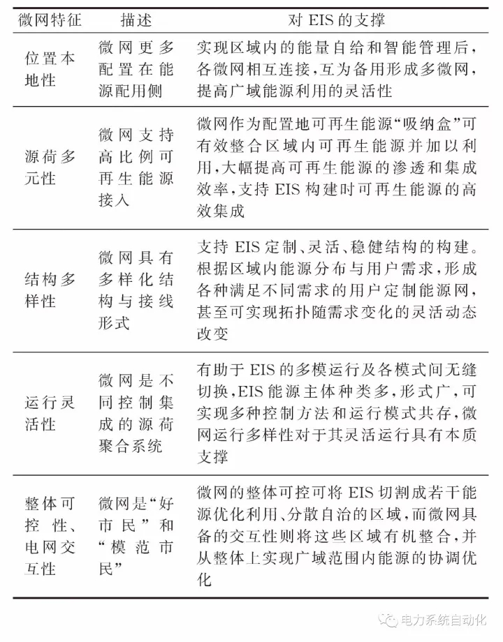 微網(wǎng)在EIS中發(fā)揮的具體作用包括:①微網(wǎng)改善電能質(zhì)量;②微網(wǎng)可提高電網(wǎng)可靠性和彈性;③微網(wǎng)可增強不同區(qū)域間能量協(xié)調(diào)互動能力;④微網(wǎng)可實現(xiàn)負(fù)荷的主動調(diào)控;⑤微網(wǎng)是信息雙向流動的有效載體。