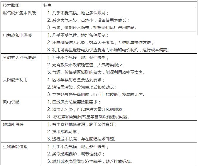 探討能源互聯(lián)網(wǎng)清潔供暖解決方案之前,我們先來(lái)分析一下傳統(tǒng)清潔供暖主要技術(shù)路徑的特點(diǎn):