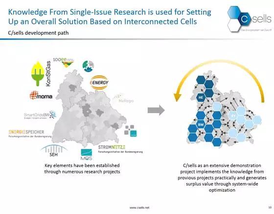 “C-sells”隸屬于在2016年12月正式啟動的SINTEG項(xiàng)目(Smart Energy Showcases – Digital Agenda for the Energy Transition),是德國繼E-ENERGY六個示范項(xiàng)目后在能源互聯(lián)網(wǎng)方面的進(jìn)一步探索。E-Energy是2008年德國聯(lián)邦經(jīng)濟(jì)與能源部在智能電網(wǎng)的基礎(chǔ)上推出的一個為期4年的技術(shù)創(chuàng)新促進(jìn)計(jì)劃。它提出打造新型能源網(wǎng)絡(luò),在整個能源供應(yīng)體系中實(shí)現(xiàn)綜合數(shù)字化互聯(lián)以及計(jì)算機(jī)控制和監(jiān)測的目標(biāo)。E-Energy充分利用信息和通信技術(shù)開發(fā)新的解決方案,以滿足未來以分布式能源供應(yīng)結(jié)構(gòu)為特點(diǎn)的電力系統(tǒng)的需求。