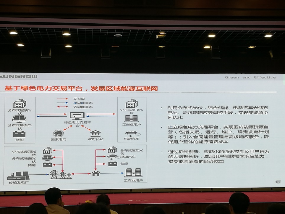 接著張總總結(jié)了可再生能源主要面臨新能源消納難、適應(yīng)性差、能效低、利用率低等問(wèn)題。并進(jìn)一步提出了對(duì)于可再生能源一站式能源互聯(lián)網(wǎng)解決方案,包括:一、光伏+儲(chǔ)能深度融合提升新能源快速發(fā)展;二、光伏+儲(chǔ)能構(gòu)建智能微電網(wǎng);三、大型光儲(chǔ)及多能互補(bǔ)電站;四、發(fā)展區(qū)域微電網(wǎng),響應(yīng)用戶(hù)側(cè)需求;五、基于綠色電力交易平臺(tái),發(fā)展區(qū)域能源互聯(lián)網(wǎng);六、光伏+儲(chǔ)能-戶(hù)用能量路由器,打造零能建筑;七、智能充電站,打造創(chuàng)新型能量管理系統(tǒng);八、完善價(jià)格機(jī)制,鼓勵(lì)探索新型交易模式;九、建立了基于互聯(lián)網(wǎng)與云計(jì)算技術(shù)的數(shù)據(jù)互聯(lián)共享平臺(tái)。