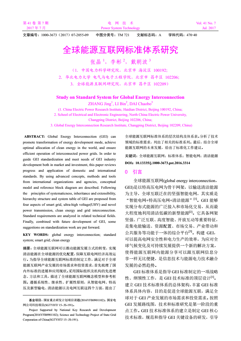 關(guān)鍵詞: 全球能源互聯(lián)網(wǎng);標(biāo)準(zhǔn)體系;智能電網(wǎng);清潔能源
