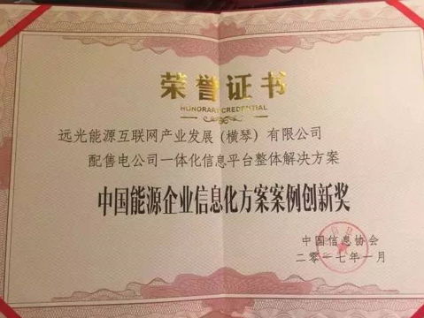 大會對過去一年來在能源信息化領域表現(xiàn)突出的企業(yè)、以及創(chuàng)新產品、優(yōu)秀案例進行了表彰。其中,遠光配售電公司一體化信息平臺整體解決方案”以其在三峽電能有限公司、珠海高遠電能科技有限公司的創(chuàng)新應用獲大會授予“中國能源企業(yè)信息化方案案例創(chuàng)新獎”。