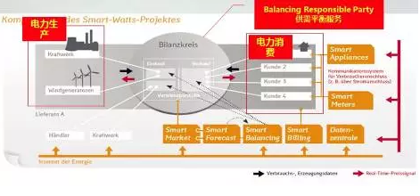第六個示范項目是亞琛SmartWatts項目。SmartWatts項目通過建立智能電力交易平臺來實現(xiàn)所覆蓋區(qū)域的分布式能源交易,消費者通過智能電表來獲知實時變化的電價,根據(jù)電價高低來調(diào)整家庭用電方案和電動車充電方案。