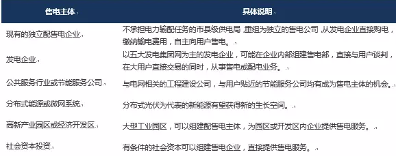 表1:售電側(cè)放開后的六類售電主體