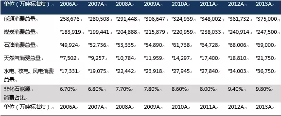 表2:中國的非化石能源消費比重不斷提高